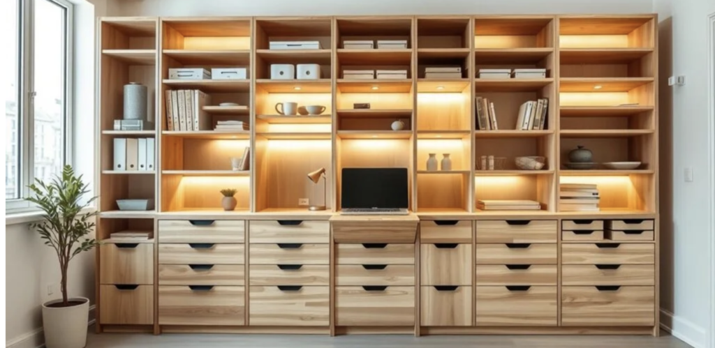 In this article, we’ll look at different ways to store things in your home office. We’ll cover DIY ideas and how to use old shelving. Our goal is to help you make your office more efficient and productive, using smart storage solutions.